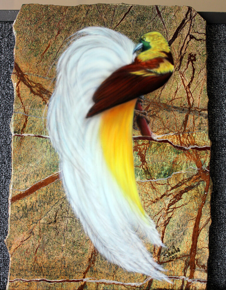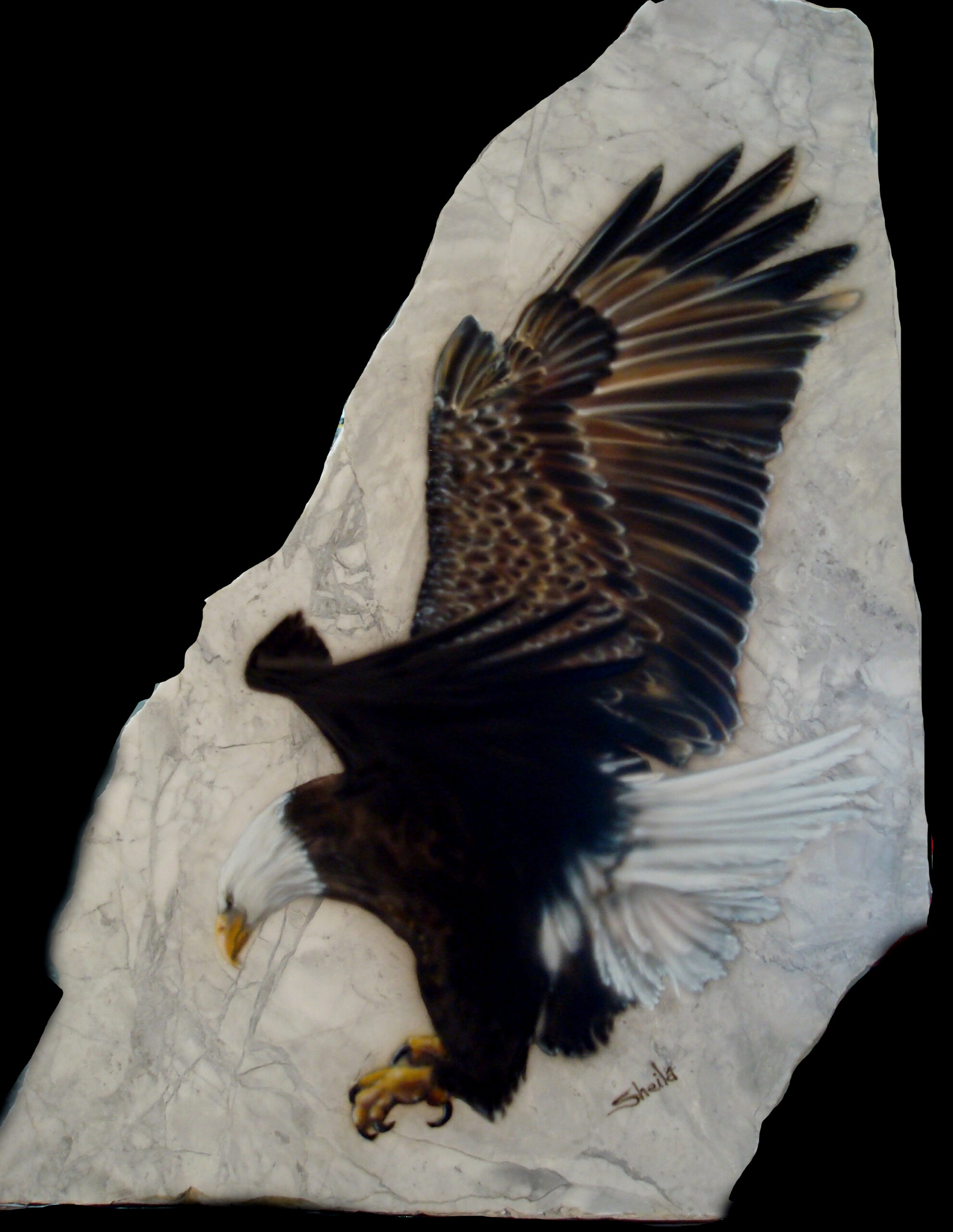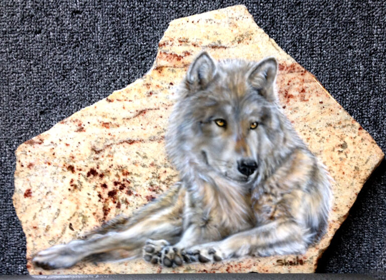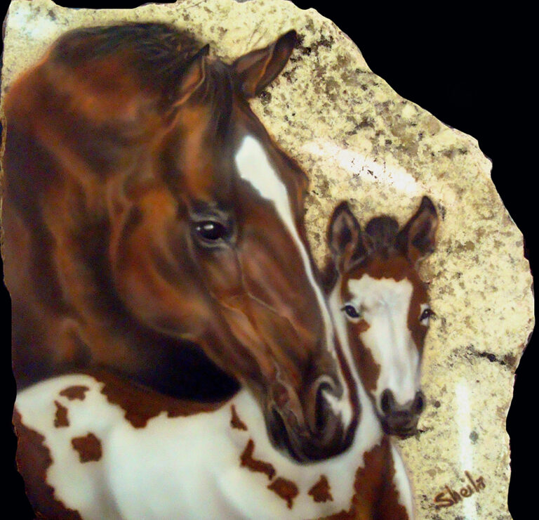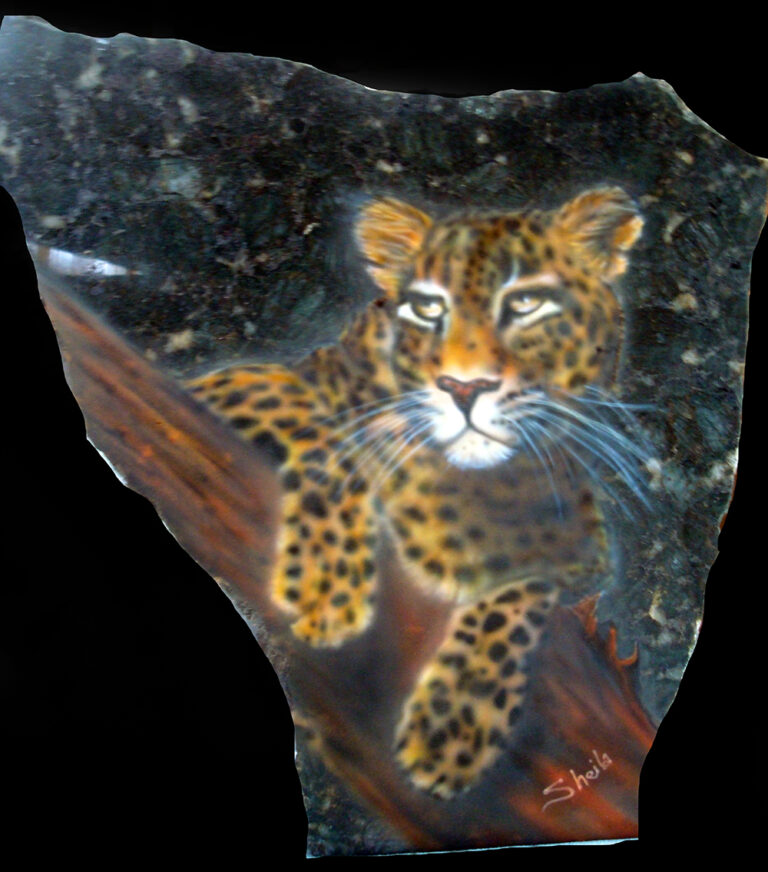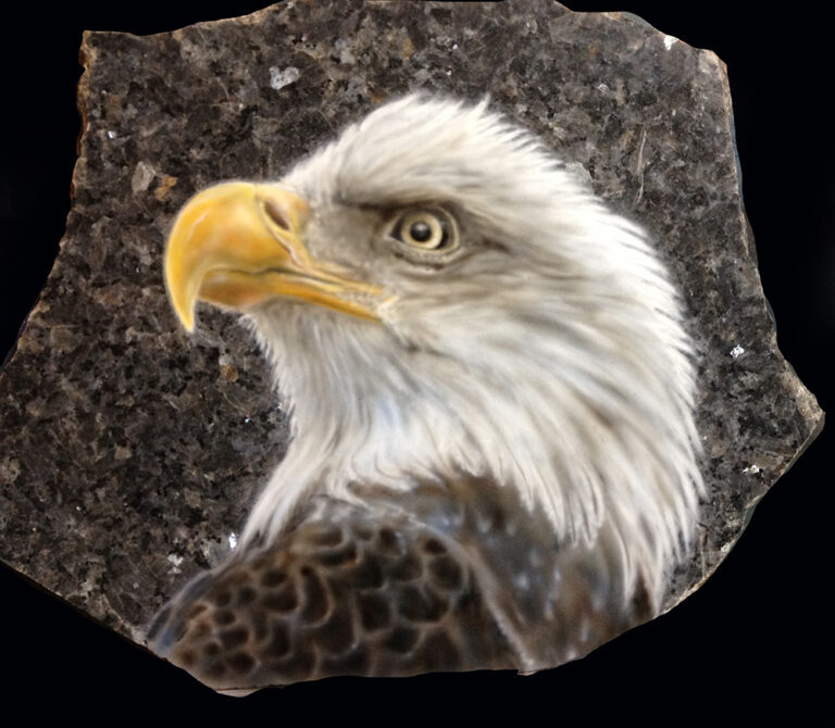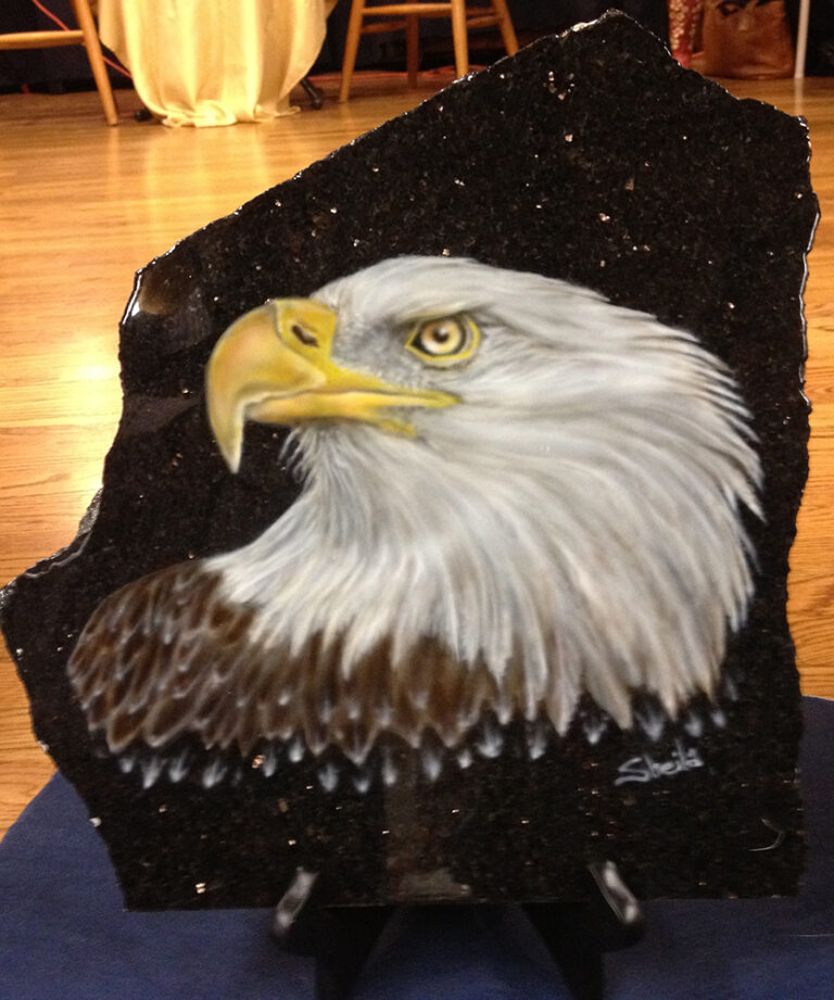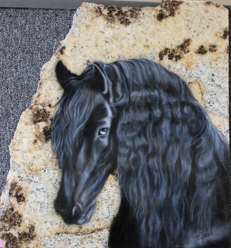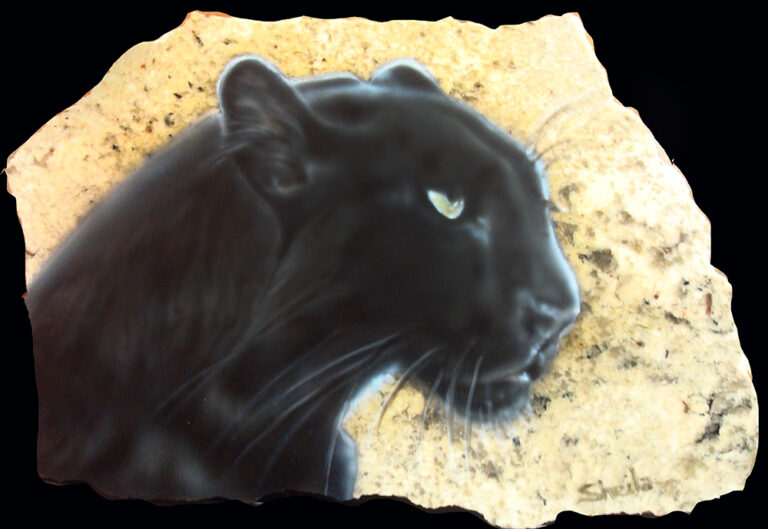 Granite and marble is the perfect background for wildlife and pet portraits. I use the same process as I do on metal for automotive painting to give each piece a flawless smooth surface. I fit each piece to a stand and finish the back with felt for a complete free-standing piece of art.